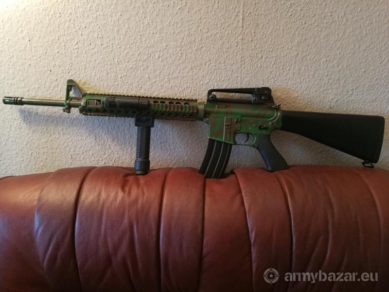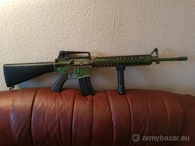 Leírás: Egyes lövés nem működik. Az ára fix. A test egyedi festéssel van ellátva. A tűzváltó és a tus az új. Golyós csapágyak vannak benne 8mm. A dugattyú végig fém fogas. A rugó 110-es. Rugóvezető csapágyazott. Messzire lö és pontos fegyver. Kihasználatlanság miatt eladó. Ha érdekel hívj.