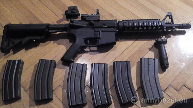 Leírás: Elado full fem A&K m4 CQB . 1 jatekon volt kint, szinte teljesen uj. Az eladas oka penz hiany, eppen ezert csere nem erdekel, alku lehetseges, de csak modjaval. Dobozaval egyutt adom, gyari aksival, toltovel, markolattal, high cap tarjaval es pluszba meg 5 boyi mid cap tarral, es egy red dottal. A gyari rugo ki lett cserelve egy gyengebbre, igy most 380-385 fps, de adom hozza az eredetit is, amivel 420. Budapesten illetve Szegeden veheto at csak szemelyesen megtekintes es kiprobalas utan. Kulon kulon nem szeretnem eladni, csak igy egyben. Telefonon hetkoznap csak het ora utan vagyok elerhto, hetvegen barmikor, es emailjeimet nezem minden nap.