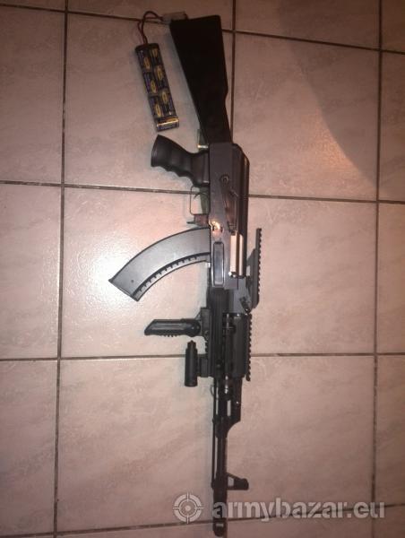 Leírás: Kihasználatlanság miatt Eladó AK 47 Tactical Airsoft fegyver, plusz szerelékkel, lézer célzóval, hord pánttal, és maszkkal, töltővel, dobozában+ bőrtokos borítással. Taktikai lámpa, nem működik , a tus vége nincs meg, az akkumulátor nem tökéletes, próbára jó. Irányár: 30.000.-.