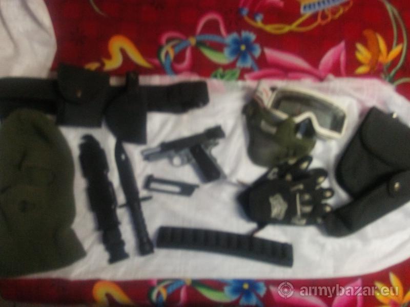 Leírás: : elado airsoft pisztolyom full fém blow-back-es nagyon jol müködik minden rajta 350-360 fps amit adok :pisztoly :rendörségi derékszij zsebekel és pisztolytokal :rácsos maszk+kesztyü+simasz+szemüveg :egy 12 db sell tarto :és egy gumikés(bajonet) az egész 15000 ft sürgösen elado a posta a vevöt terheli kihasználatlanságmiat eladó