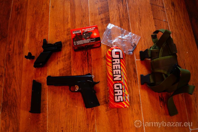 Leírás: Eladó egy kjw kp05-ös pisztoly, szereléksínnel, swiss arms red-dotal pisztolytokkal és ajándék gázzal 35000ft-ért.
