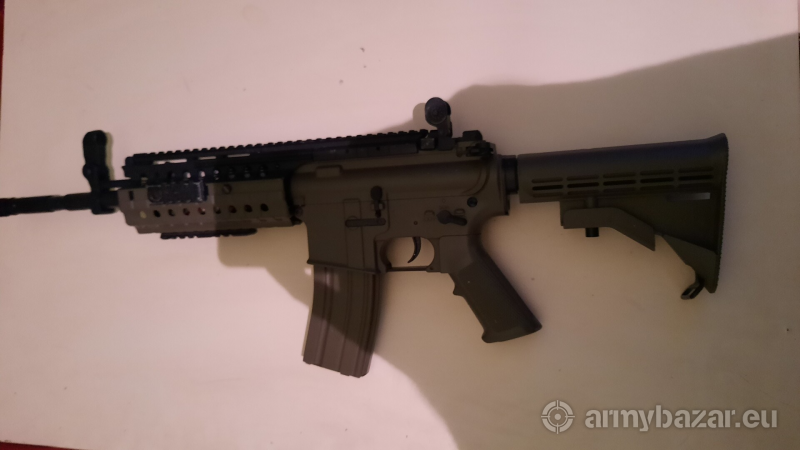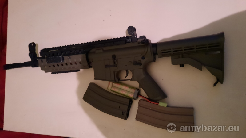 Leírás: Eladó a képeken látható m4 gépfegyverem 2tárral és 1 akkumlátorral. hangtompítót nem lehet rá tenni mert használat során letörtek a kis menetek az elején. Teljesen működő képes jó állapotban karban tartva. Kihasználtság miatt adnám el. Ha teheted Telefonon hívj 06304643585.