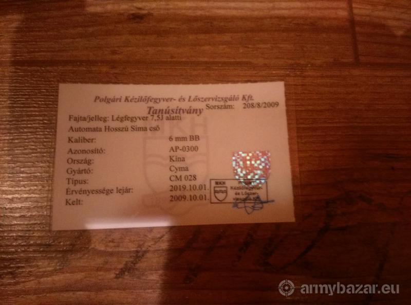 Leírás: Elado Cyma AK47 (CM.028) Dobozaval minden tartozekaval. 2 orat hasznaltam korulbelul es azota a dobozaban pihen. Gyakorlatilag uj fegyver! Kihasznalatlansag miatt elado.