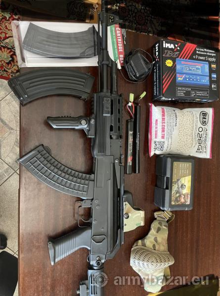 Leírás: Cm.039 fém aeg gyari aksival töltővel tárral. Plussz lipo aksi imax b6 okos töltő, 2db fémt tár mind kettő újj red dot holo +bb es arc maszk. Játékon még nem vett részt. Kb 400 bb ment at rajta. Csere erdekelhet apple watch ra