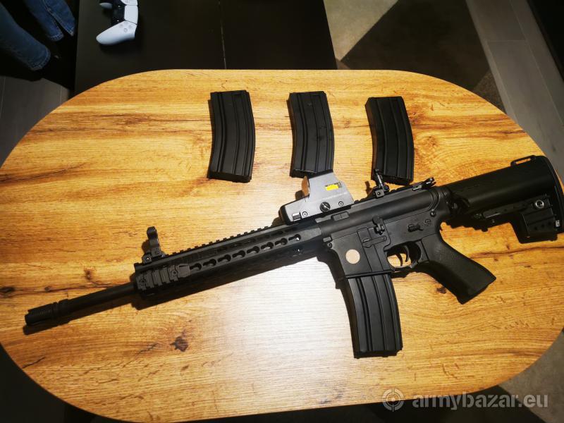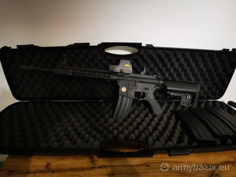 Leírás: 3-szor használt újszerű M4 Keymod, tökéletesen működik. Nagyobbra váltás miatt vált eladóvá. CQB-ra tudom ajánlani. Csak a fegyver 46000 Ft A fegyver + 4 HiCap fém tár 56000 Ft A Holo sight +védő külön vásárolható 14000 Ft-ert