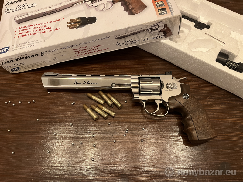 Leírás: Kihasználatlanság miatt eladóvá vált, csupán 2x használt, gyönyörű állapotú CO2 Dan Wesson revolver. 2022 decemberben lett vásárolva a balistas.com -on, így 1 év jótállás van még rá. Ez a leghosszabb csövű (8”) modell, ennek köszönhetően nagyon erős és pontos. A képeken látható összes tartozékával és eredeti dobozával adom. Paraméterek: - Gyártó: ASG - Kaliber: 4,5mm / .177 - Lőszer: fém BB - Torkolati sebesség: 130 m/s (426 fps) - Energia: 3 Joule - Súly: 1014 g - Hossz: 320 mm - Csőhossz: 136 mm Személyesen megtekinteni a III. kerületben lehet, de akár postázom is a vevő felelősségére, terhére.