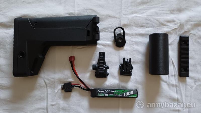 Leírás: Sziasztok! Eladó projektváltás miatt egy Double Eagle UTR45 (DE UTR-45) SMG. Szép lőkép, 0.28-as BB-vel volt használva, kb. 400 lövés ment át rajta. Hop alig van rátekerve, 45-50 méterig pontos. Van hozzá egy 3D nyomtatott M4 váltámasz adapter, de adom mellé az eredetit is. Tuning: - Begadi Fly 5 flat hop - Begadi MAG nózi - CYMA 22 TPA motor - Eshooter Kestrel V2 Basic MOSFET Amit adok hozzá (4. kép): - 6 db mid-cap tár - 3D nyomtatott hangtompító - Alap irányzékok - Szíjcsatalkozó - 11.1-es akksi - Eredeti válltámasz Ár: 75.000 Ft Személyesen átvehető a 11. és 22. kerületben, esetleg Budapest-Székesfehérvár vonalon. FoxPost-al szívesen küldöm előreutalás után.