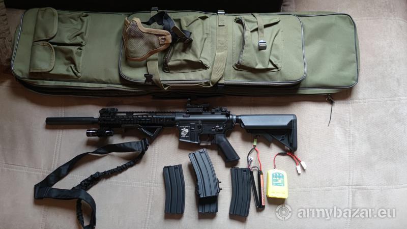 Leírás: Eladó lett airsoft szettem, eladás oka 1 év alatt egy gyakorló játékon vettem részt es kb ennyit használtam a fegyvert.A fegyvert vásárlás után beadtam egy szervizre kilett hezagolva újra zsirozva hop up gumi cserélve.A fegyver teljesen fém. Hibátlan új állapotú. Amiket adok hozzá. -4 db midcap tár + a gyári (fèm) 1 db akku 2000mah + töltő. -1 db fegyver táska. -red dot, hangtompító, markolat. Eredeti tobozában.