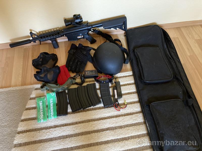 Leírás: Eladásra kínálom M4 replikámat és tartozékokat kihasználatlanság miatt. A fegyver fejlesztve lett kb. 390 fps. Fém ház és belső. Van rajta egy scope és supressor. A fegyver mellé természetesen jár az akksi és a hozzá való töltő. Adok mellé airsoft kesztyűt amit egyszer használtam, taktikai mellényt, 3 szemüveget, csapatjelzőt, 5 tárat amiből 3 Midcap és 2 Highcap típusú, egy sisakot, egy hord táskát, 2 fém hálós arcvédőt. Köszönöm ha elolvastad, ha érdekel keress bátran!