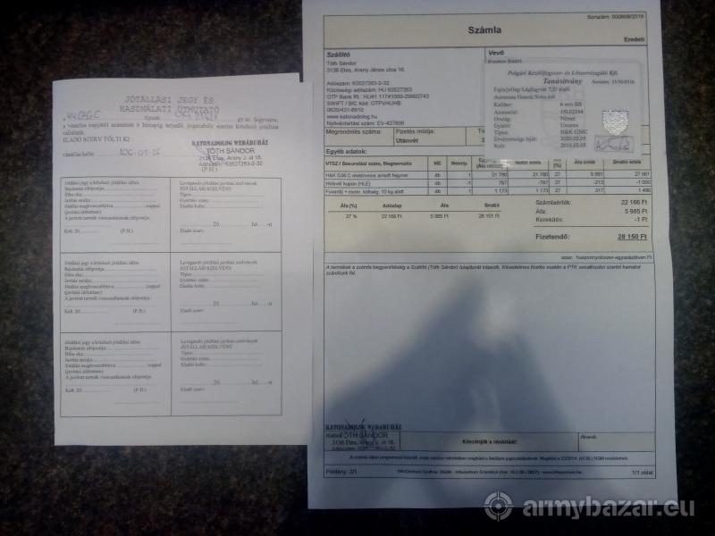 Leírás: -GARANCIÁS- Umarex H&K G36C 2016.05.26.-án vásárolt airsoft fegyverem vált eladóvá kihasználatlanság miatt, tökéletes állapotban, kiegészítőkkel, MKH kártyával, gyorstöltővel, töltővel és egy kis csomag G&G 0.20-as fehér BB-vel. A fegyver alig volt használva, játékot még nem látott, és kb. 2000bb lett vele kilőve. A fegyver anyaga fekete ABS műanyag behajtható válltámasszal, fém belső csővel. A tárba 52 bb fér, ami a gyorstöltőt + 4 bb-t jelent. A fegyver eredeti doboza megvan, jótállási jegy is, és az eredeti használati útmutató. 2016.11.26-ig garanciális. Ára: 19.000Ft, de postai úton a szállítási költség hozzáadódik. A fegyver kipróbálható Dunavarsányban