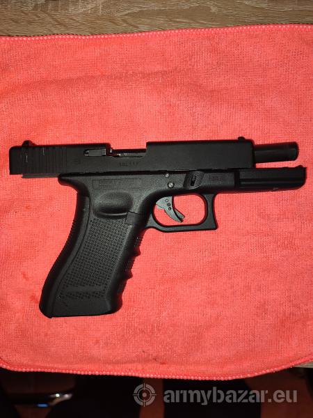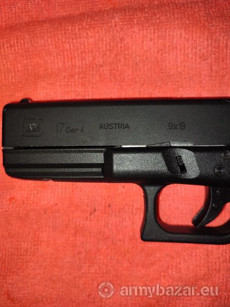 Leírás: Glock 17. 4.gen Officially Licensed Product of GLOCK Gyöngyvászon tok, 2000 lövedék, 8 patron Működés: Gáz (GBB CO2) Szánhátrasiklás: Van Anyag: Fém szán, műanyag tokozás Tűzmód: egyeslövés,sorozat Hop-up: állítható Lövedék kezdősebessége: 420 FPS Hossz: 202 mm Súly: 659 g Tár: 1db (13 BB)