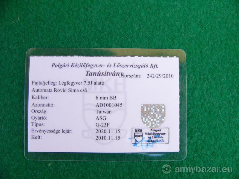 Leírás: A fegyver újszerű állapotban van. Ez azt jelenti, hogy 4 éves, de még nem volt használva. Az ár a fegyver mellett 1 palack gázt és egy zacskó BB lövedéket is tartalmaz. MHK kártya érvényessége 2020. november.