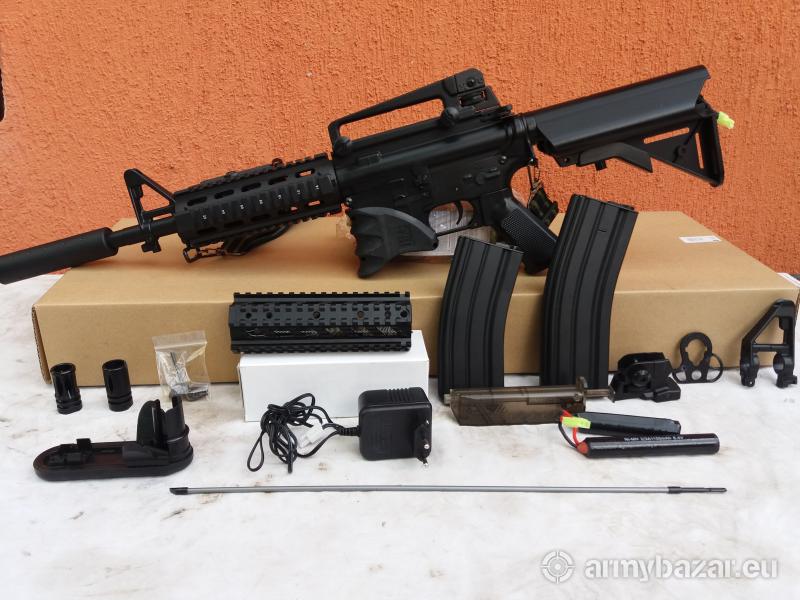 Leírás: Elado egy vadonat uj M4 509 QOB airsoft gépkarabély és tarozékai Regényt nemirok mert Ha valakit érdekel a fegyver akkor felmegy egy internetes áruház oldalára és megtalálja a részletes leirást a gépkarabélyrol Viszont diohélyban annyit hogy 3kg a súlya egy tele tárral adom Kiprobálási lehetöség van és ajánlott