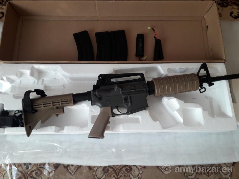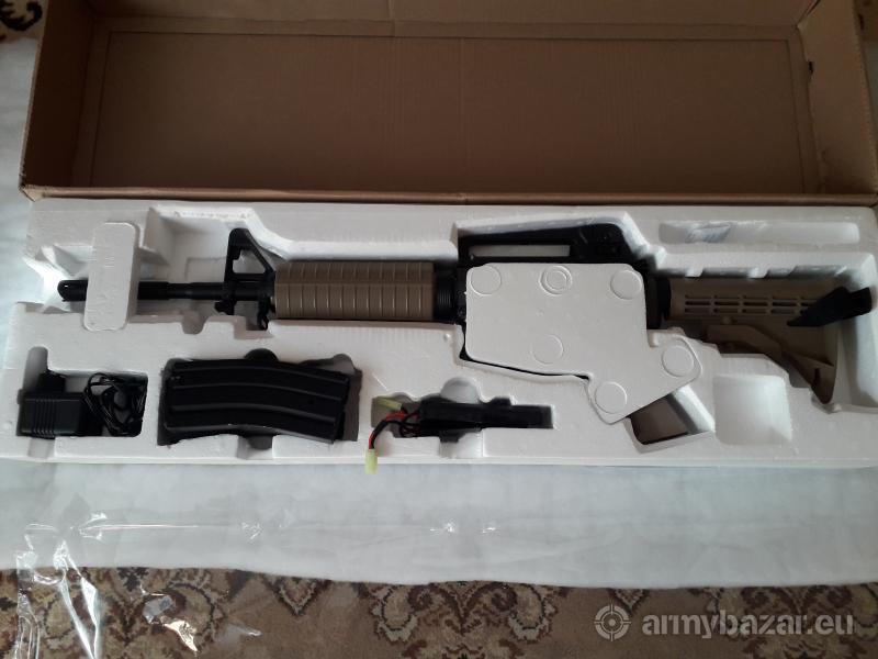 Leírás: Helló Eladó egy kezdőszintű airsoft M4 es fegyó ami egybenvan nem lötyög nemakar szétesni 360 fps t produkált az utolsó mérésen Kivitele: külső belső csö fém az előagy műanyag és akksitartós A test műanyag 3db fémköpenyes tárvan hozzá a gaerbox fém a tus cső is fém a váltámasz műanyag A fegyohoz tartozik még 2db gyári akksi ( 1db tégla 1db propeller ) amik okostöltővel lettek töltve és teszik a dolgukat Megvan a gyári töltöje is meg a doboza is Kiprobálása megoldható