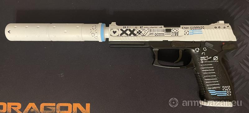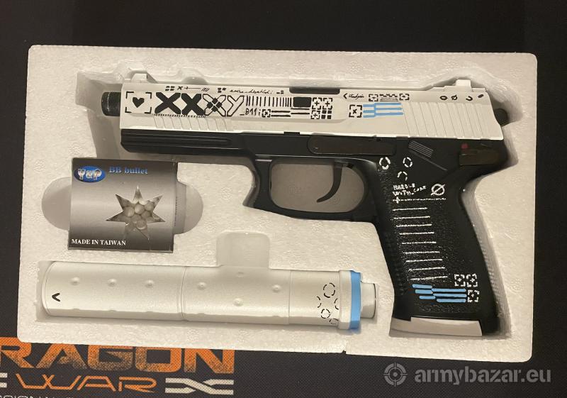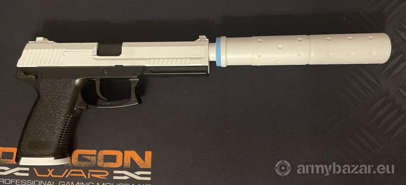Leírás: Üdv Eladó ez a custom Mk23 airsoft replika. Ez egy STTI ST23 Non-blowback gázos pisztoly ami teljesen új, nem volt használva, főleg nem játékon. A festés egy cs:go-s skin alapján készült. Nagyon halk és sokáig bírja egy gáz töltéssel, tökéletes másodlagos fegyver. Eredeti dobozában, tartozékaival adom (Pisztoly, 1db tár, hangtompító, bb, papírjai, céllap) + garancia Ár: 35 000Ft Személyes átvétel Budapesten vagy a vevő terhére tudom postázni. Érdeklődni emailen: elit.tony950@gmail.com