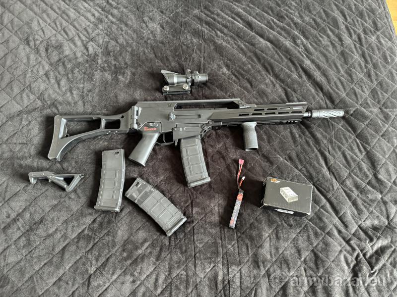 Leírás: Eladó egy keveset használt Novritsch SSR63 A2-es airsoft replika a képen látható tartozékokkal.