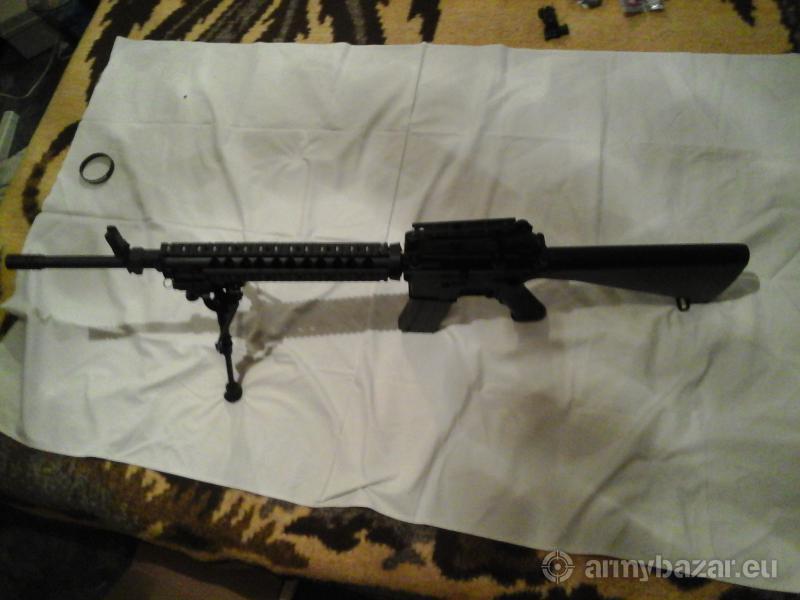 Leírás: Az A&K által gyártott megbízható markingos alutestes replika (nem ócska spiáter) ép teljesen és jó állapotú. Újra tömítve és vezetékelve alacsony ellenállású kábelal T csatizva (deans). Bore up rendszerű és Fém gearbox, preciziós csővel. Flip up első irányzék Bipod és hordfogantyú nem része 1 high cap tár és gyári aksi