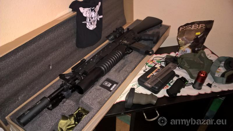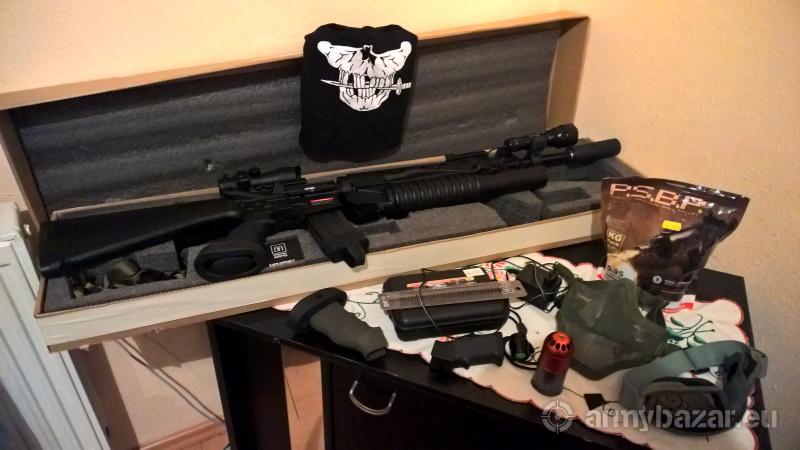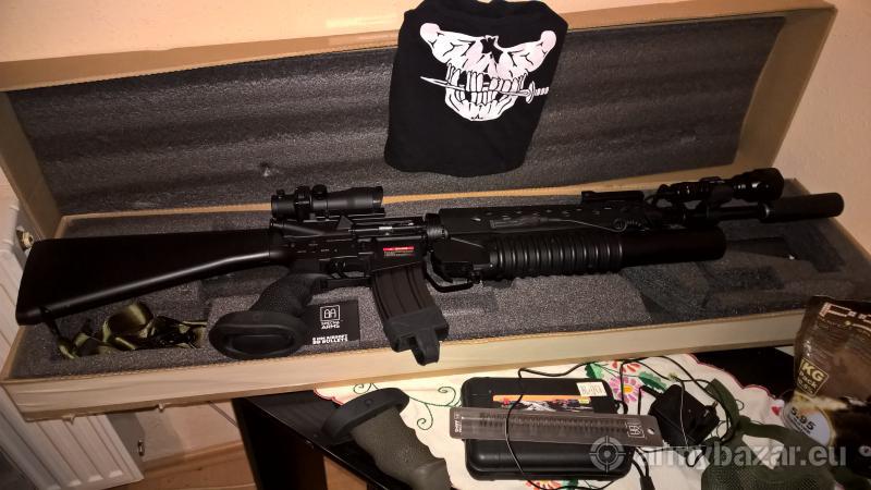 Leírás: Szinte teljesen m16-os eladó játékon sosem volt red dot-al hord fogantyúval szijjal lámpával(aksis) gránát vetővel és 1 gránátal eladó. Azért eladó mert nem használom és szükségessé vált az eladása. Szervizelt új hopup gumival. (csak a biztonság kedvéért.) 1 zacskó lőszer volt vele el lőve. 2-rugo megy hozzá. 410 fps körüli az erősebb. Hibátlan aksival és töltövel. 5kg 110 cm hangtompitóval. Papirja kártyája mindene megvan eredeti doboza is.