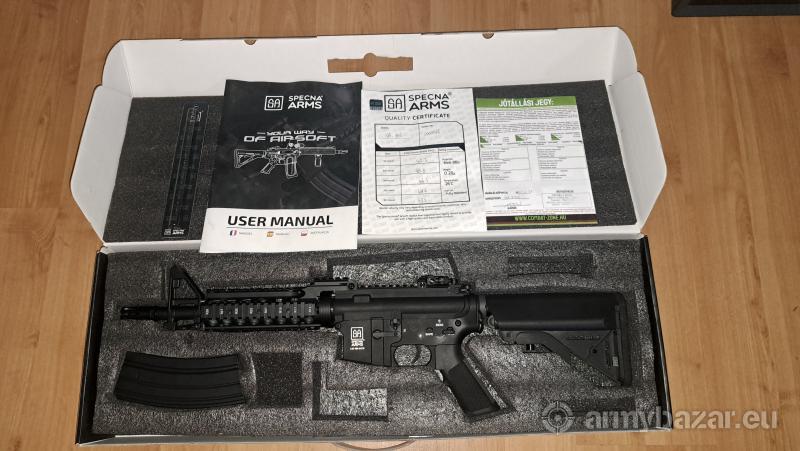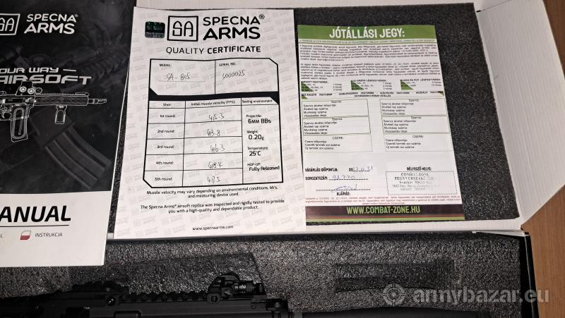 Leírás: Eladó kihasználatlanság miatt a képen látható specna SA-B05 gépkarabély full fém 2023.11 hóban vásárolt a combatzonál,kb fél csomag lőszer lett elhasználva vele , 2db tár van hozzá és egy pótrugó adok hozzá töltöt és egy redot ot. Lövedék kezdősebesség [FPS]: ~400/~310 Meghajtás: elektromos Gearbox típusa: módosított V2-es Tüzelési mód: egyes lövés/sorozat Hossz [mm]: 700-785 Cső hossz[mm]: 290 Súly [g]: 2540 Tár típusa: Hi-Cap tár Tár kapacitás [db]: 300 Hop-Up: van, szabályozható Blow Back: nincs Anyaga: alumínium és cink ötvözet,acél, műanyag